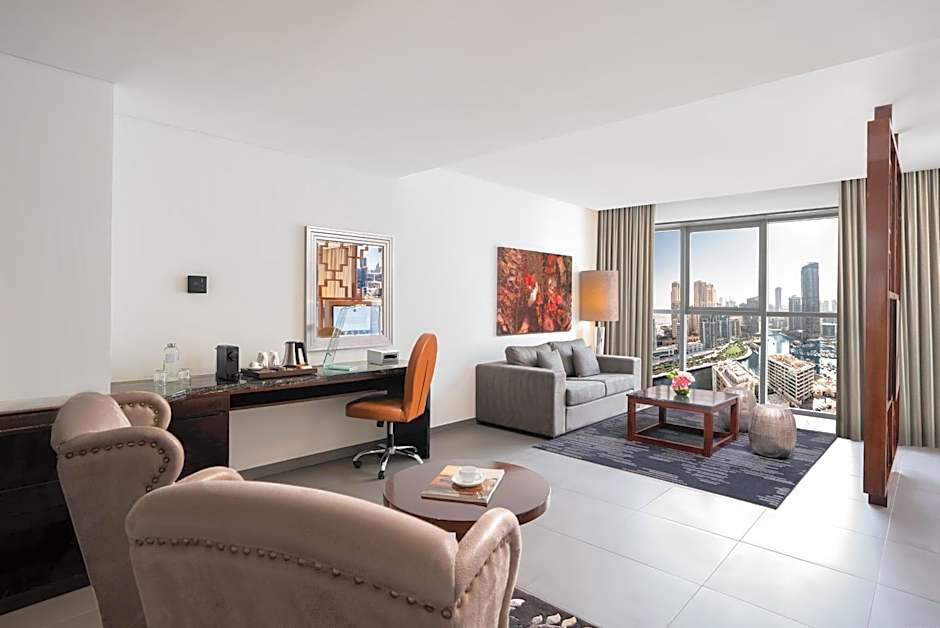 Located on the upper floors, this spacious 35 sqm nonsmoking One-Bedroom Club Suite features a comfortable king-size bed, a separate living room with a convertible sofa bed and large windows that offer partial Marina views. Enjoy amenities such as tea-making facilities, a coffee machine and complimentary seamless high-speed WiFi. The bathroom is equipped with a bathtub and eco-friendly products for your indulgence. Chromecast is available to elevate your entertainment experience. Guests staying in the One-Bedroom Club Suite enjoy exclusive access to the Club Lounge.